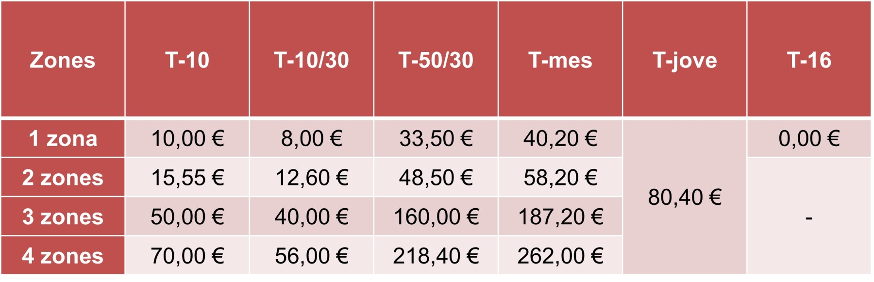 Així mateix, els ciutadans del Pirineu i Aran poden disposar del títol T-jove, vàlid fins als 30 anys, i també del títol de transport T-16, vàlid dels 4 als 16 anys, ambdós inclosos.
